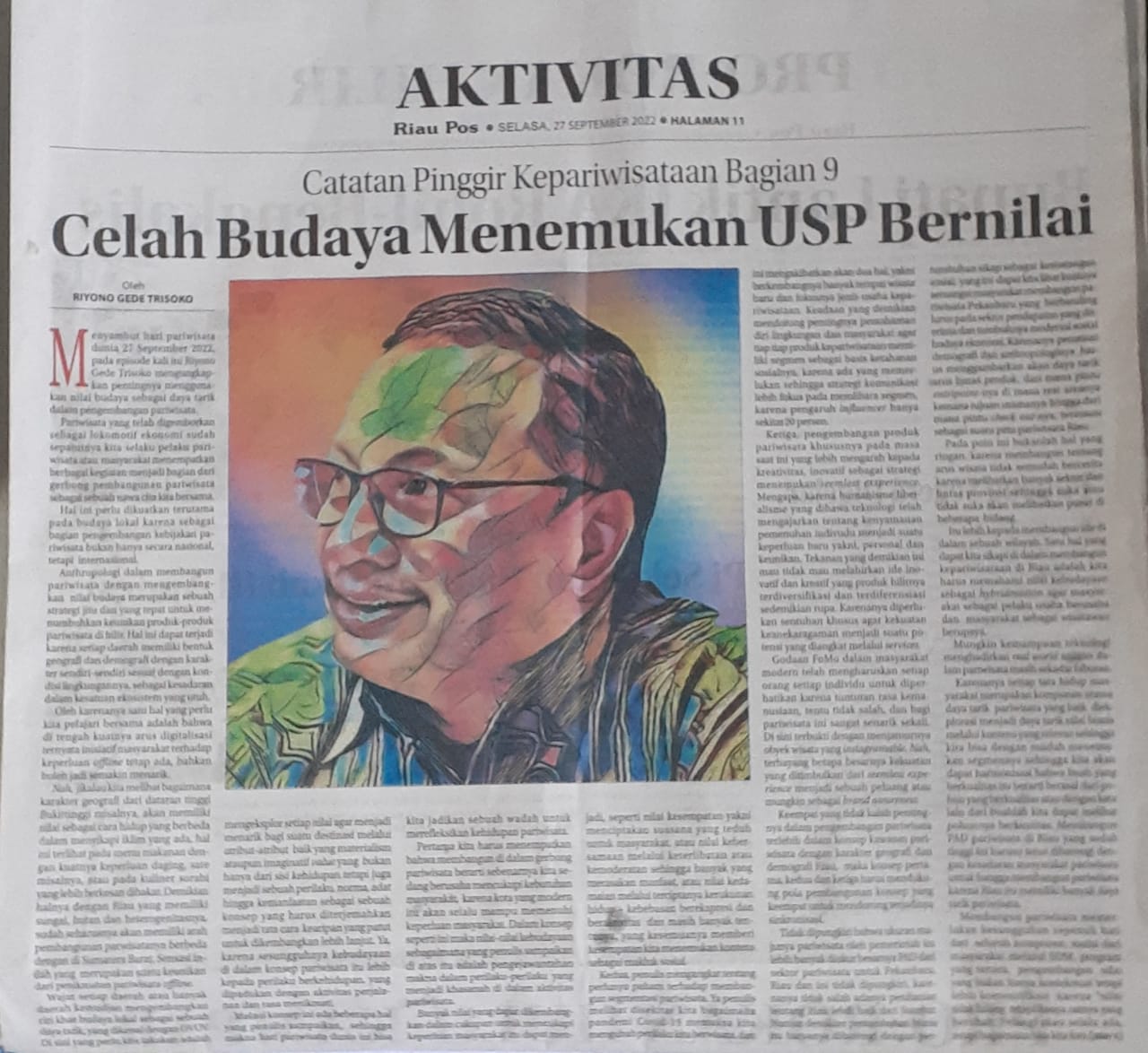 Pekanbaru, (RGT.com) – Adalah tidak dapat dipungkiri bahwa pembatasan telah menyebabkan berkurangnya kesempatan beraktivitas. Artinya hanya sedikit orang untuk berkumpul dan berkegiatan, karenanya adalah benar bahwa “persepsi sosial berpengaruh terhadap tumbuhnya perilaku individu tertentu”. Berbicara tentang berbagai pembatasan di masa Covid-19 merupakan sebuah pembelajaran yang jelas perihal pariwisata itu bersumber sebagai kegiatan sosial. Istilah staynomic pertama kali diangkat dari bagian judul dalam jurnal saya yang dimuat dalam jurnal ADI International Conference SeriesThe 3rd International Conference on Global Innovation and Trends in Economy 2021. Dengan judul Staynomic: The Near One, The Easy One, The Small One dan sebelumnya pada Podcast Apekesah di bulan Juli yang mengupas tentang bagaimana kehidupan perilaku orang berwisata di masa pandemi covid 19.