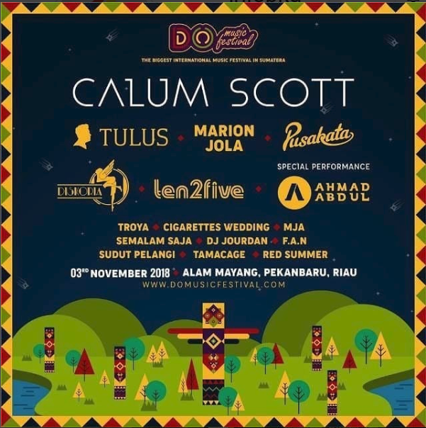 PEKANBARU – Festival musik terbesar di Pulau Sumatera, Do Music Festival yang akan menghadirkan enam artis nasional dan internasional akan digelar di Taman Wisata Alam Mayang, Pekanbaru, Provinsi Riau pada 3 November 2018 mendatang.