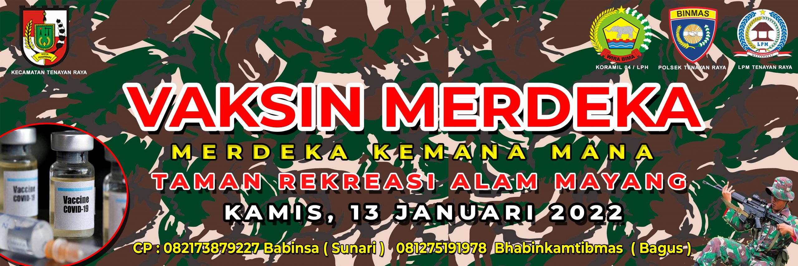 Pekanbaru, RGT.com – Taman Rekreasi Alam Mayang Pekanbaru bekerjasama dengan Koramil 04 menggelar vaksinasi merdeka bagi kelompok umur lansia, kemudian dewasa dan ikut juga anak-anak dengan tema, “Vaksin Merdeka”, bertempat di Taman Rekreasi Alam Mayang Jalan Imam Munandar Pekanbaru, Kamis (13/1/2022) kemaren. Pengelola Taman Rekreasi Alam Mayang Riyono mengatakan, kegiatan vaksinasi merdeka ini ditujukan kepada masyarakat Tenayan Raya dan Kulim yang belum terjaring dalam kegiatan vaksinasi yang telah dilaksanakan pada sebelumnya.