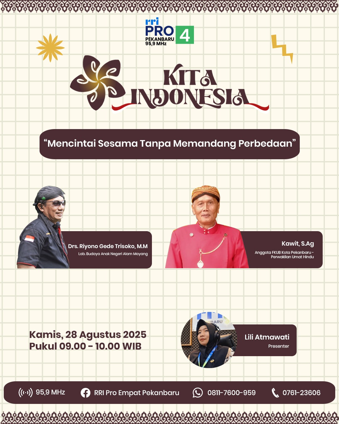 RGT.COM- Kamis, 28 Agustus 2025 di Acara Obrolan Komunitas RRI Pro 4 : Mencintai Sesama Tanpa Memandang Perbedaan Bersama Presenter Lili Atma